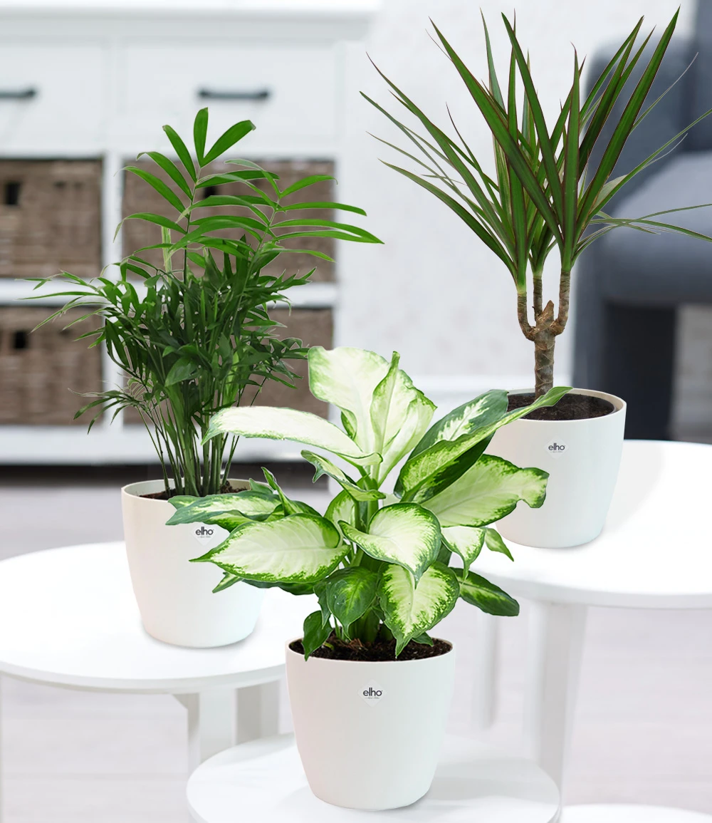 3er-Mix Luftreinigende Zimmerpflanzen ‚Classic‘ inkl. Elho®-Übertöpfe ‚Weiß‘