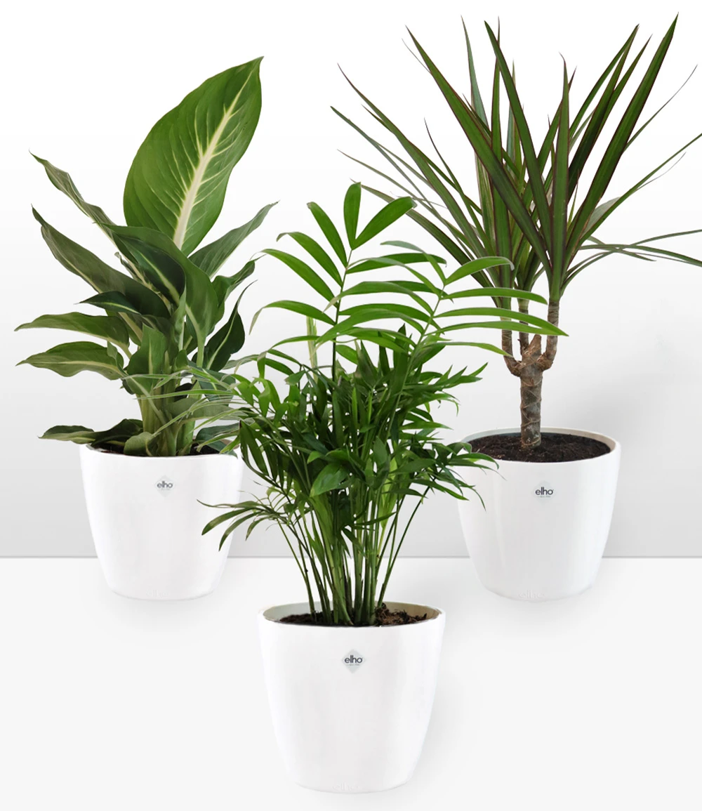 3er-Mix Luftreinigende Zimmerpflanzen inkl. Elho®-Übertöpfe ‚Weiß‘