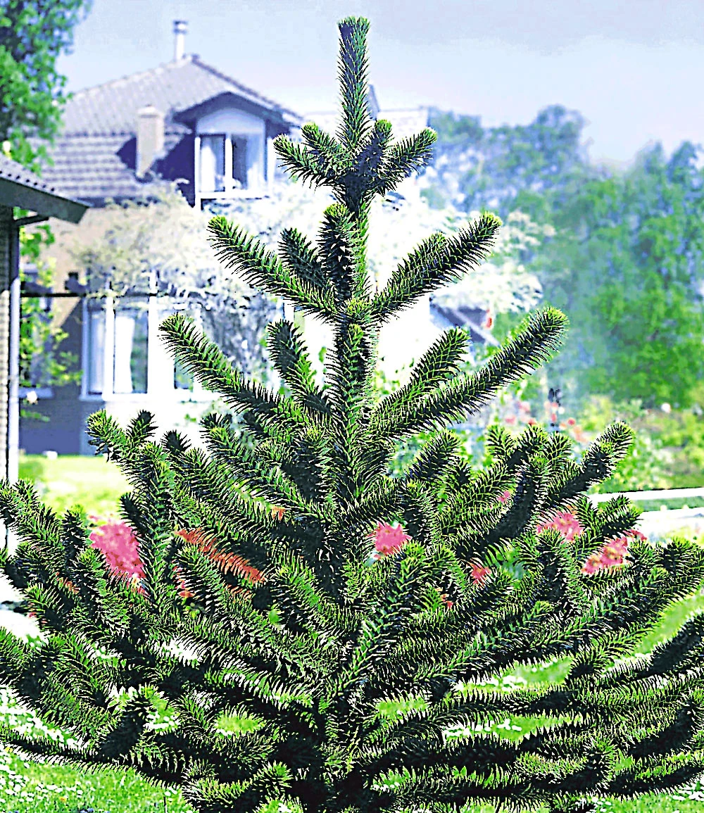 Der junge immergrüne Affenschwanz-Baum zeigt eine deutlich kegelförmige Silhouette und ziert ausgefallene Gärten! In der Natur kommt der aus Südamerika stammende, immergrüne Nadelbaum nur noch selten vor. Auch unter dem Namen Andentanne, Schmucktanne oder Araukarie bekannt, gehört der Affenschwanz-Baum (Araucaria) zu den ältesten Baumfamilien. In den letzten Jahren hat sich der langsam wachsende Affenschwanz-Baum auch in unseren Breiten bei Liebhabern aparter, exotischer Pflanzen zu einer begehrten Rarität entwickelt, denn er gedeiht auch in unserem Klima.
