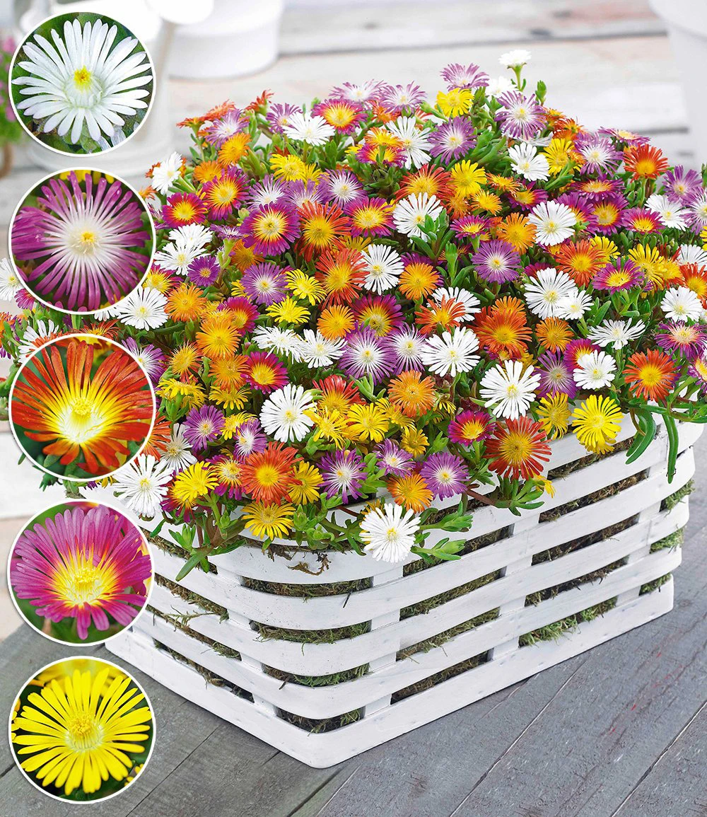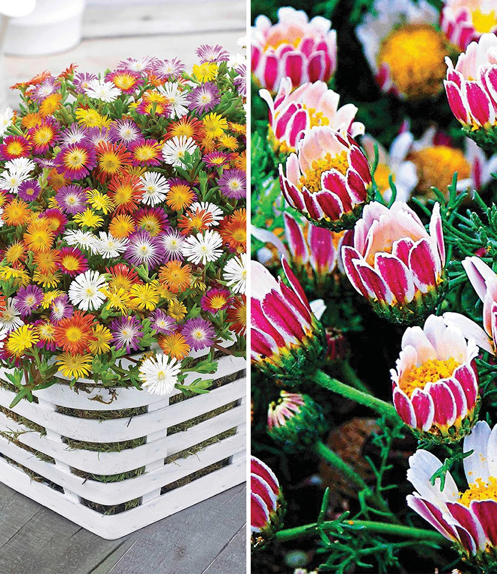 Kollektion bestehend aus 5 Pflanzen Eisblumen „Wheels of Wonder“ und 3 Pflanzen Afrikanisches Ringkörbchen.