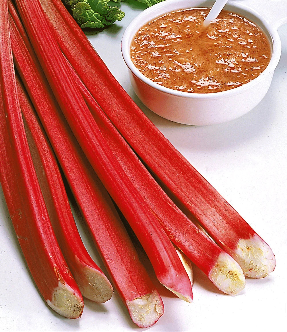 Bei dem Blut-Rhabarber ernten Sie 3x pro Pflanze und Saison! Diese hervorragende, sehr frühe Marktsorte mit dunkelroten Stielen & rosa Fleisch schmeckt sehr aromatisch & mild-säuerlich. Die üppige Ernte der dicken, vitaminreichen Stangen lässt sich hervorragend zu Rhabarberkuchen, Kompott & Marmelade verarbeiten. Der Blut-Rhabarber (Rheum rhabarbarum), auch Gemüse-Rhabarber, wächst kräftig & ist sehr robust im Garten.