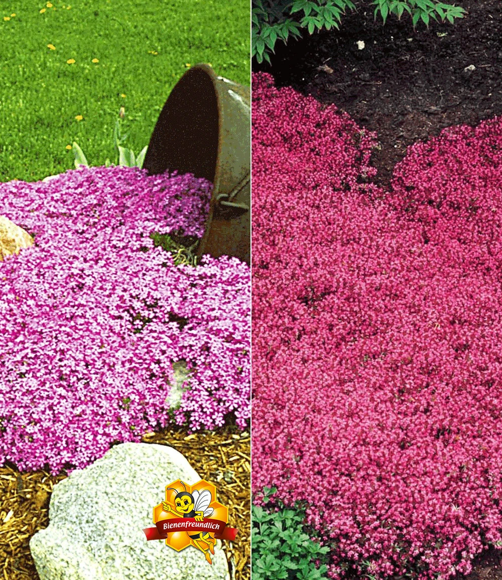 Die immergrüne Kollektion besteht aus 3 Pflanzen Teppichphlox Emerald Pink und 3 Pflanzen Bodendecker-Thymian.