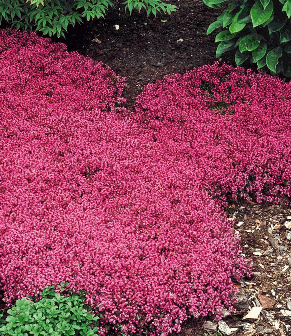 Der Bodendecker-Thymian, auch Sand-Thymian genannt, ist ein immergrüner, bodenbedeckender Halbstrauch mit einer Wuchshöhe von 5 bis 10 cm. Die Zweige sind stark verästelt und bilden so schöne, dichte Polster. Der Duft der Blüten & der immergrünen Blätter ist beeindruckend. Der Bodendecker-Thymian ist winterhart. Mit seinem schönen Blütenflor ist er ideal als Unterpflanzung für höhere Stauden, oder als Bodendecker im Steingarten & Staudenbeet. Die frischen oder getrockneten Blätter können auch zum Kochen verwendet werden. (Thymus serpyllum)