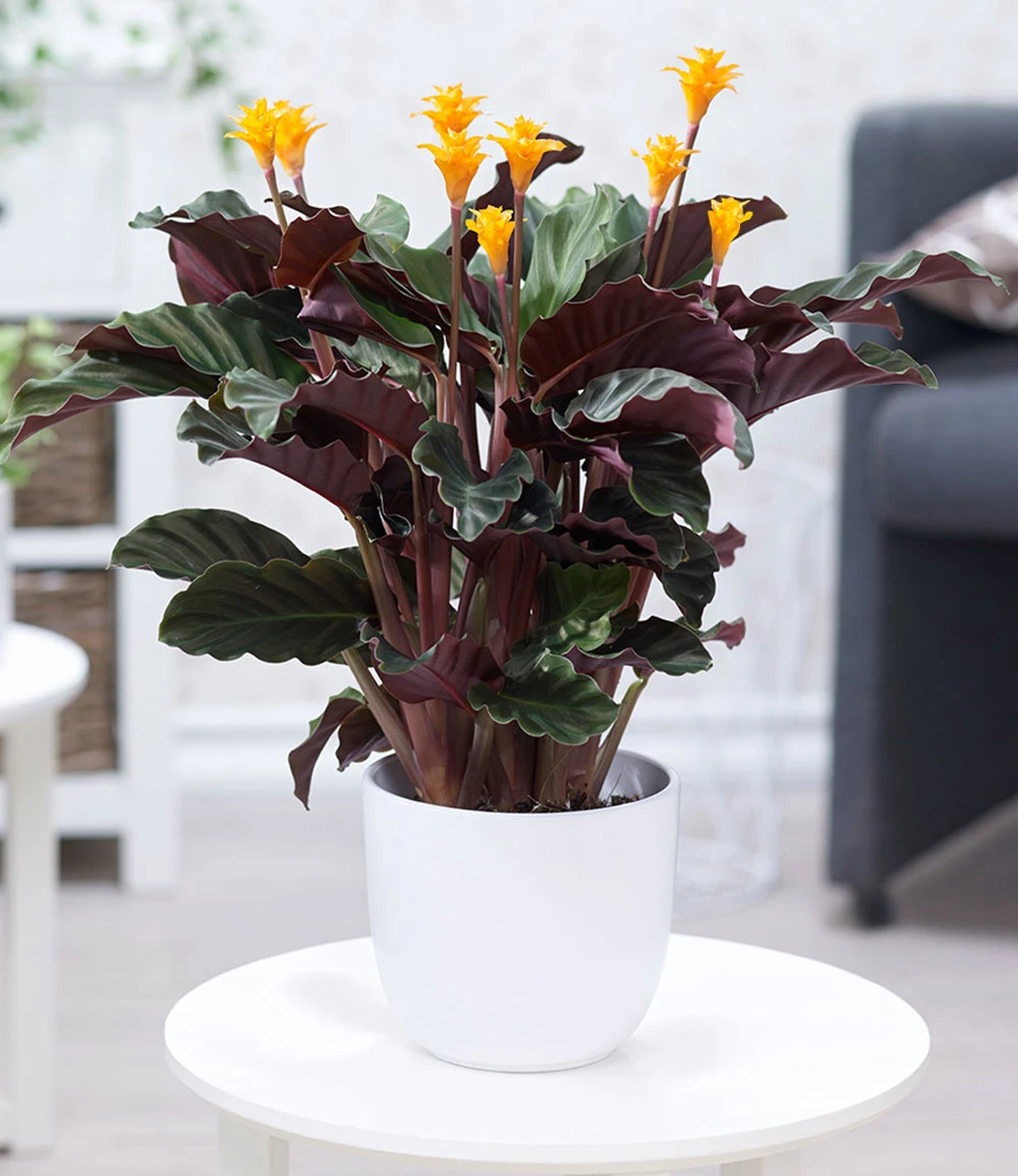 Die Calathea wirkt luftreinigend und filtert schädliche Umweltstoffe aus der Luft. Sie produziert Sauerstoff und fördert das Raumklima. (Calathea crocata)