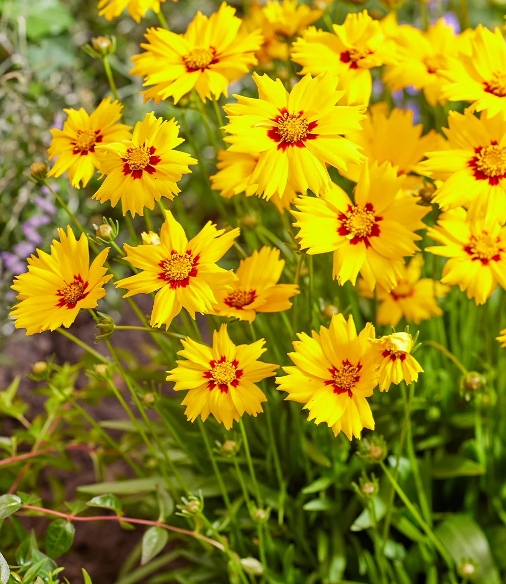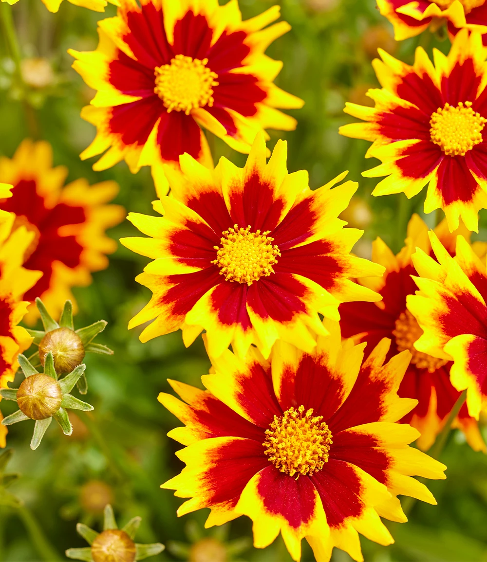 Die Blütezeit des Coreopsis Solar® Mix (Mädchenauge) ist von Juni bis September, er bevorzugt einen durchlässigen Boden. Die winterharten, mehrjährigen Stauden haben eine Wuchshöhe von ca. 70 cm & lieben einen sonnigen Standort. Das Schneiden von Schnittblumen für die Vase fördert die Blühwilligkeit. (Coreopsis grandiflora)