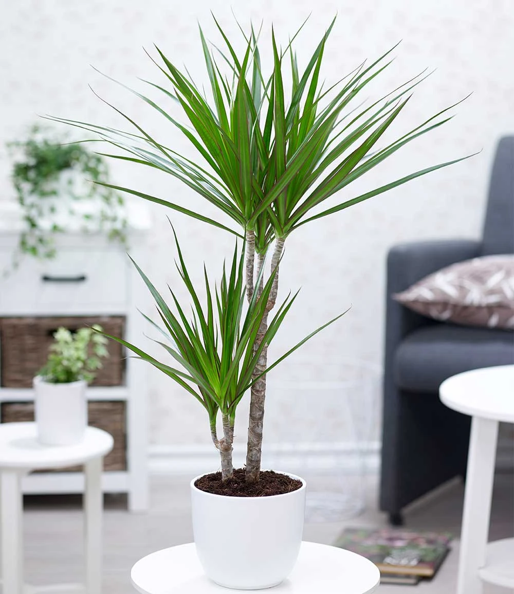 Eine perfekte Grünpflanze, die bei Ihnen in den heimischen vier Wänden für Gemütlichkeit sorgt und besonders ziert! Schafft ein perfektes Ambiente! Zu den beliebtesten Pflanzen zählt die Dracena Marginata ca. 75-85 cm hoch, auch Drachenbaum genannt, die zwar aussieht wie eine Palme, aber keine ist! Drachenbäume sind sehr auffällig. Sie sorgen mit ihren schlanken und schönen Blättern für ein behagliches Flair! Tipp: Hell stellen, aber nicht in die pralle Sonne. Die Dracena Marginata ca. 70-80 cm hoch wirkt luftreinigend und filtert schädliche Umweltstoffe aus der Luft. Sie produziert Sauerstoff und fördert das Raumklima in der Wohnung und in Büroräumen. Ihr Pflegeaufwand ist gering.