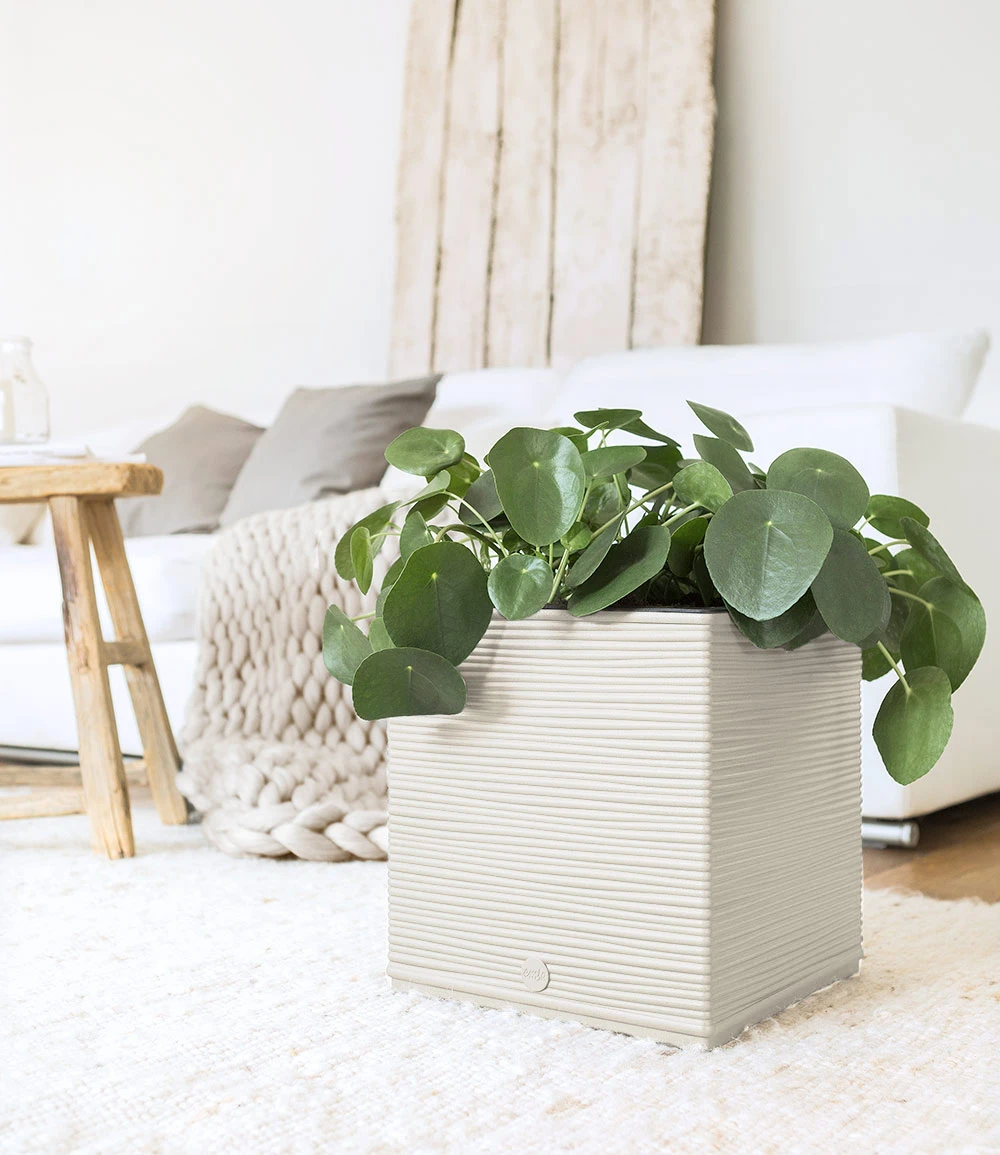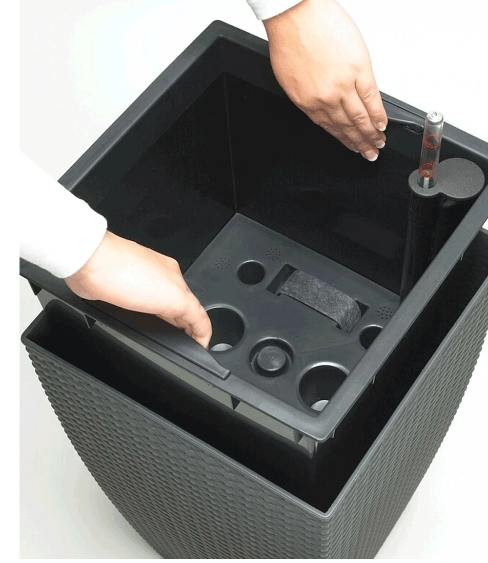 Das integrierte Langzeit-Bewässerungssystem verfügt über ein großes Wasserreservoir von 2,8 Litern – dadurch müssen Sie weniger gießen und haben trotzdem optimale Pflanzergebnisse. Die Pflanztöpfe für den Indoor- und Outdoorbereich überzeugen mit ihrer außergewöhnlichen Optik und dem Pflanzeinsatz (12 Lieter Erdvolumen) mit praktischen Griffmulden, die ein einfaches Handling beim Be- und Umpflanzen ermöglichen.