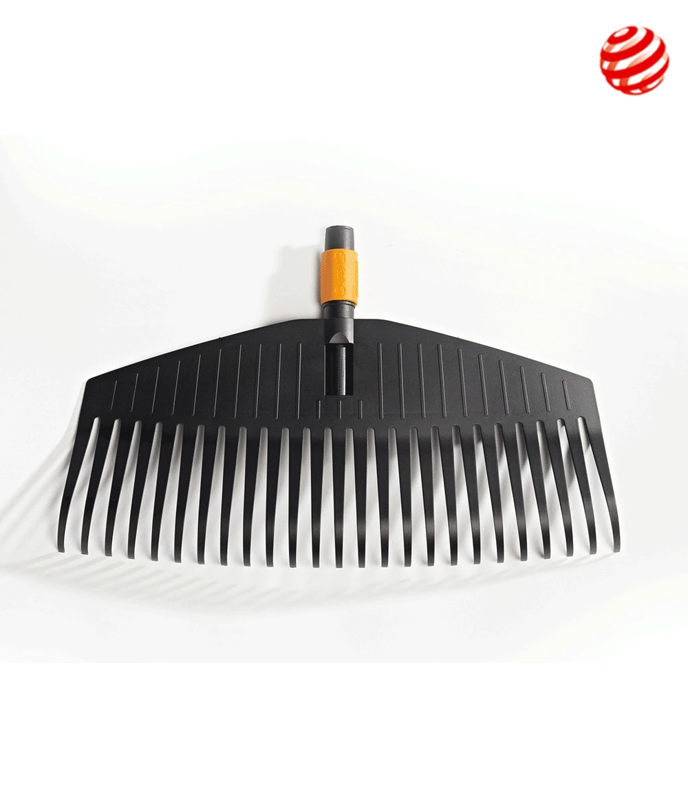 Mit dem Fiskars® QuikFit Laubbesen lassen sich Blätter und Rasenschnitt rückenschonend und kraftsparend zusammenharken. Der Laubbesen hat 25 weiche Zinken aus Kunststoff, die in Zugrichtung arbeiten. Sie können den Fiskars® QuikFit Laubbesen schnell und bequem an jedem beliebigen Stiel aus der QuikFit-Reihe montieren.