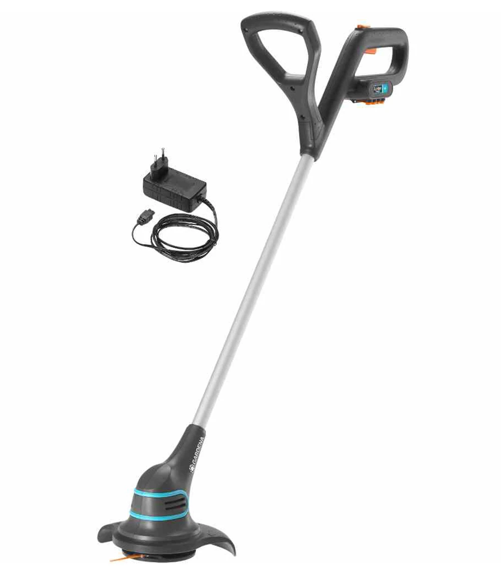 GARDENA® Akku Trimmer SmallCut Li-23R ist kabellos, leicht und handlich. Ideal zum Trimmen langer Rasenkanten und für Ausputzarbeiten im Garten. Der GARDENA® Akku Trimmer SmallCut Li-23R ist mit einem auswechselbaren Lithium-Ionen-Akku ausgestattet, sehr leistungstark, das Rotor-Cut-System ist geräuscharm und schneidet sehr exakt. Für das einfache Arbeiten in aufrechter Körperhaltung sorgt ein Teleskopstiel mit langem und einfach verstellbarem Zusatzgriff. Ein ausklappbarer Pflanzenschutzbügel lässt auch das nahe Trimmen an Blumenbeeten zu. (GARDENA®.Art-Nr. 09822-20)