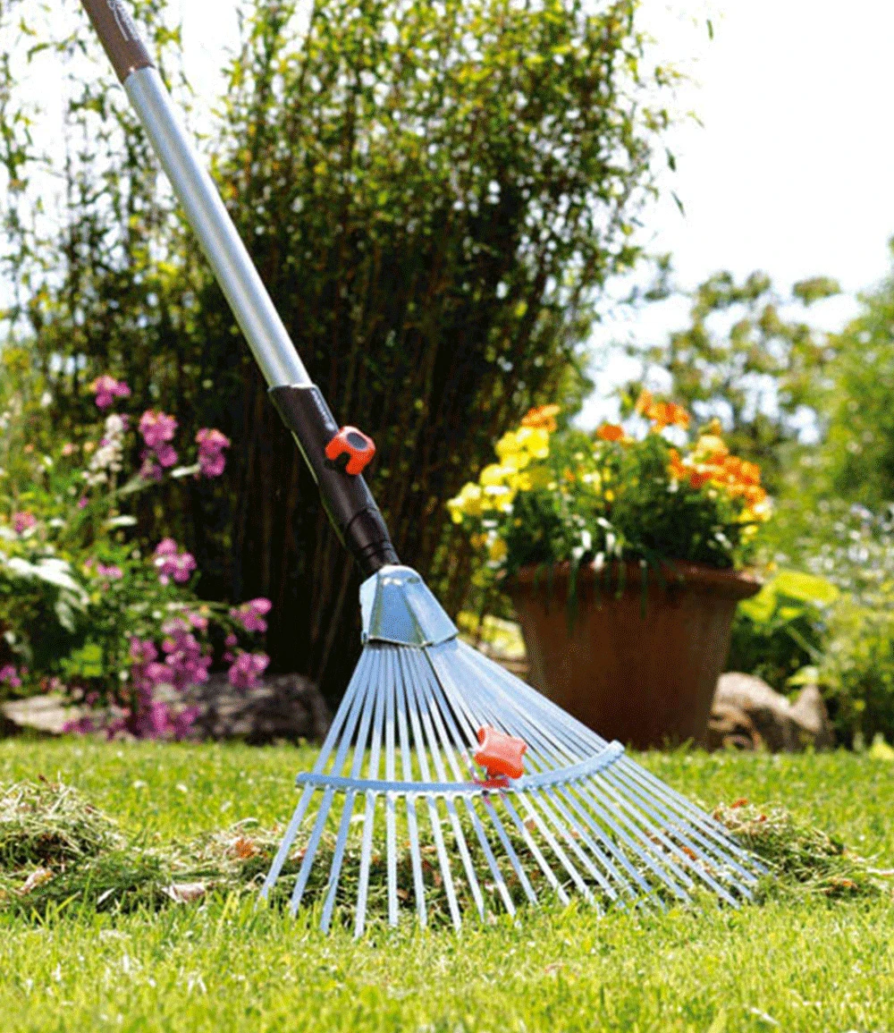 Mit verstellbarem Zinkenabstand: dadurch geeignet für feines und grobes Kehrgut. Arbeitsbreite variierbar von 30 – 50 cm.(GARDENA®-Artikel-Nr.: 03103-20)