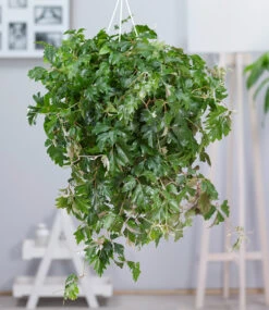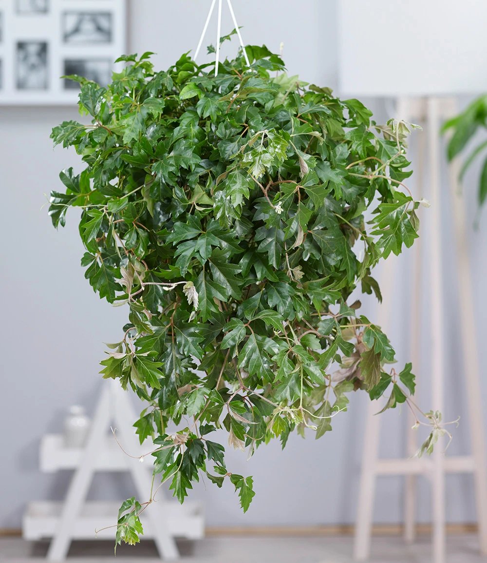 Eine echte Rarität! Die Hängepflanze Cissus ist seit Jahrzehnten eine beliebte Zimmerpflanze für jeden Wohn- und Büroraum, aber nur schwer bei uns zu bekommen! Der Königswein (bot. Cissus rhombifolia) stammt ursprünglich aus Amerika, wo er in subtropischen und tropischen Regionen vorkommt. Die Sorte ‚Ellen Dancia‘ besticht mit gefiederten, gelappten Blättern und kletternden, rostfarbenen Trieben, die an Weinreben erinnern. Hängepflanze Cissus ist eine schnell kletternde Blattpflanze und daher ideal als elegante Pflanze in einem Hängetopf, aber auch als Rankpflanze in einem Topf mit einer Kletterhilfe.