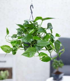 Diese Zimmerpflanzen sind in ihrer Pflege nicht nur anspruchslos, sondern auch äußerst robust gegenüber typischen Pflegefehlern. Stellen Sie die Hängepflanze Efeutute an einen möglichst hellen Standort. Ansonsten ist sie sehr pflegeleicht. Sie können die Ranken jederzeit durch Abschneiden kürzen. (Epipremnum pinnatum aureum)
