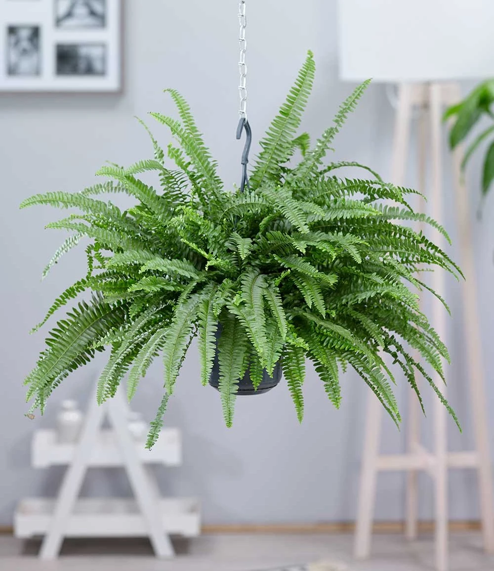 Die Hängepflanze Schwertfarn ist mit ihren mittelgrünen, glatt gefiederten Blättern einer der beliebtesten Farne. Wegen seiner langen Wedel kommt er am besten in Blumenampeln, auf Säulen oder Podesten zur Geltung. Als Zimmerpflanze bringt die Hängepflanze Schwertfarn ein frisches Grün und exotisches Flair in jede Wohnung und jedes Büro. Mit zunehmendem Alter bekommt ein Schwertfarn zum Teil sehr ausladende Wedel, die bis zu einem Meter lang werden können. Die Pflanze wirkt luftreinigend und filtert schädliche Umweltstoffe aus der Luft. Schwertfarne produzieren zudem Sauerstoff, verbessern die Luftfeuchtigkeit und unterstützen so ein gutes Raumklima.