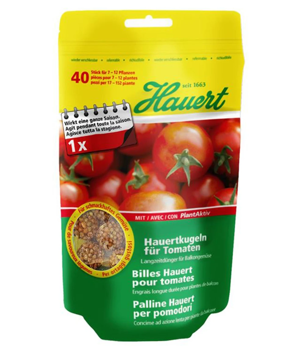 Die Hauertkugeln für Tomaten und Gemüse ernähren Ihre Tomaten und Ihr Balkongemüse bedarfsgerecht während der ganzen Saison mit allen nötigen Nährstoffen, ohne Nachdüngung. Stecken Sie bei Tomaten 4-6 Kugeln pro Pflanze in die Erde (in der Nähe des Wurzelbereichs), bedecken Sie sie mit Erde und gießen Sie die Pflanze.