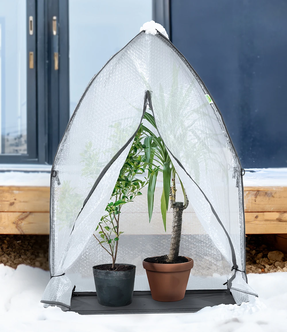 Überwintern Sie Ihre wertvollen Kübelpflanzen und Topfpflanzen ab sofort einfach draußen im ICEDOME Überwinterungszelt. Das Überwinterungszelt ist schnell im Garten, auf dem Balkon oder der Terrasse aufgebaut. In dem großzügigen Innenraum finden große und kleine Pflanzen reichlich Platz für die Überwinterung. Die 3-lagige, UV-beständige Luftpolsterfolie bietet optimalen Schutz vor widrigen Witterungsbedingungen, wie Wind, Regen, Feuchtigkeit, Schnee und Frost. Das ICEDOME Überwinterungszelt kann im Frühjahr auch zur Anzucht von Jungpflanzen genutzt werden und im Sommer dient es als Gewächshaus für Wärme liebendes Gemüse (z.B. Tomaten, Gurken, Auberginen), Obst (z.B. Melonen, Andenbeeren) und Küchenkräuter. Im ICEDOME Überwinterungszelt sind die Pflanzen vor Regen geschützt und sie stehen wärmer, dadurch bleiben sie gesund, die Früchte reifen besser und werden aromatischer.