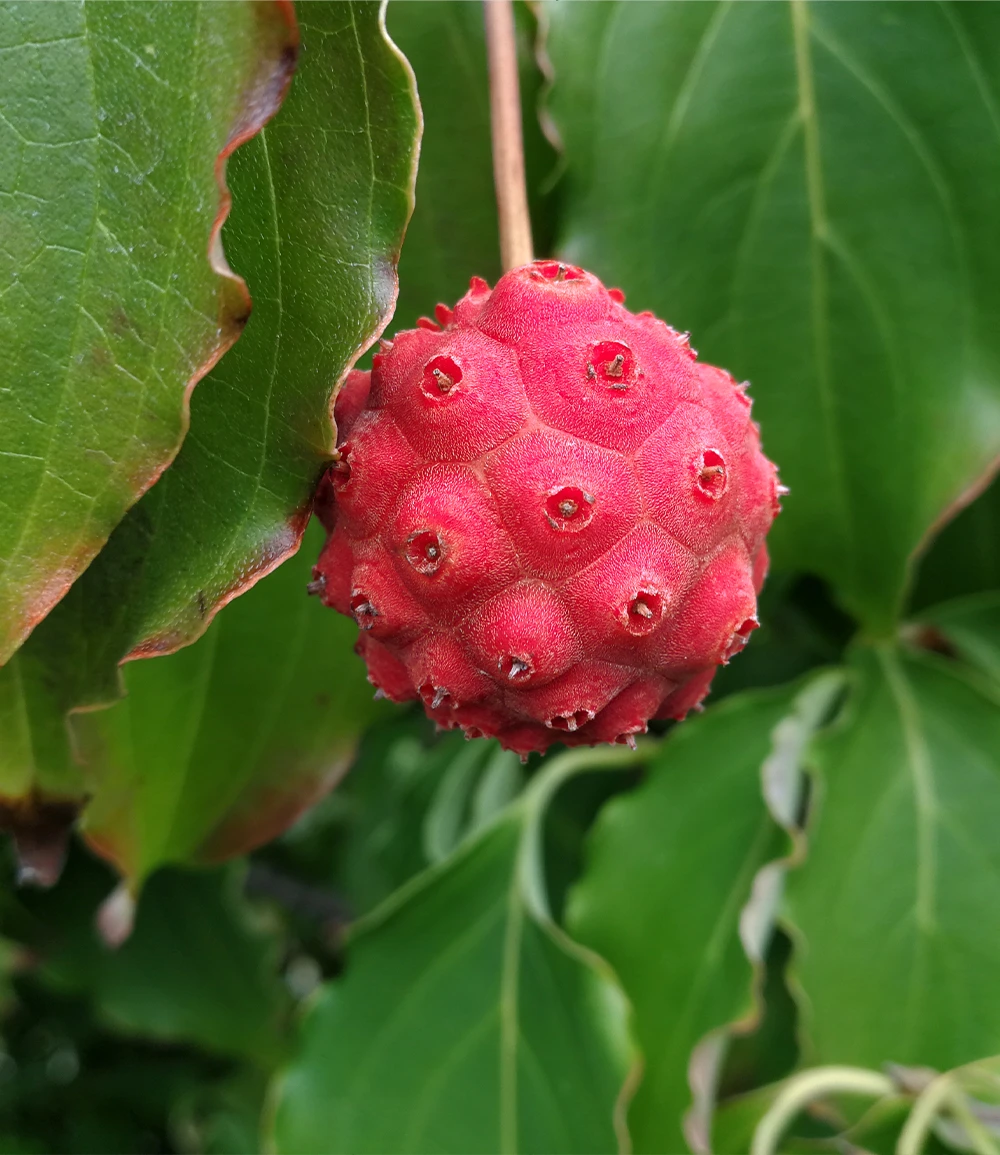Der Japanische Blüten-Hartriegel bezaubert mit weißen Blüten, malerischer Wuchsform sowie mit schöner, leuchtend roter Herbstfärbung. Er blüht überreich und ist nicht empfindlich gegen Spätfröste, Trockenheit und Hitze. Der Japanische Blüten-Hartriegel (Cornus kousa) ist ein sehr beliebter & wertvoller Blütenstrauch, der sich ab August mit auffälligen, himbeerartigen Früchten schmückt. Für die Einzelstellung im Garten, als Kübelpflanze oder im Hintergrund eines Staudenbeetes ist er eine Augenweide.