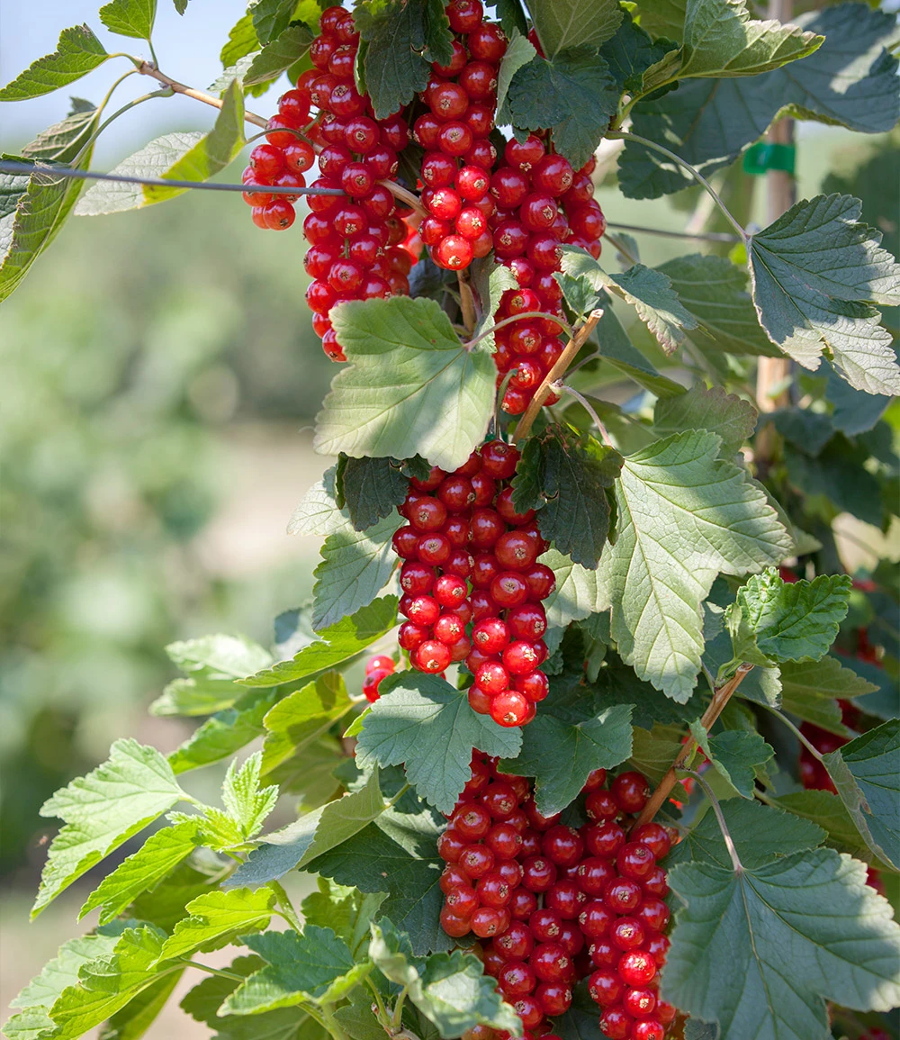 Mit der Johannisbeer-Säule Rovada® ist die beliebte, ertragsstarke und robuste rote Johannisbeere jetzt endlich auch als Säule erhältlich. Die kräftigen Pflanzen bleiben auch ohne größere Schnittmaßnahmen schön schlank und sind damit ideal für kleine Gärten und für Kübel auf Balkon & Terrasse geeignet. Die köstlichen Beeren hängen zur Erntezeit im Juli und August an zahlreichen, extrem langen Trauben an der Johannisbeer-Säule Rovada® (Ribes rubrum) und laden zum Naschen ein. Die großen, glänzenden Früchte mit dem aromatischen, süß-säuerlichen Geschmack sind ein köstlicher Genuss – frisch, in Kuchen, Marmelade und Nachspeisen. Johannisbeeren enthalten neben Vitamin C viele weitere wertvolle & gesunde Inhaltsstoffe, die Ihrem Körper gut tun. Die pflegeleichte Pflanze ist selbstfruchtbar und resistent gegen Mehltau & Rost.