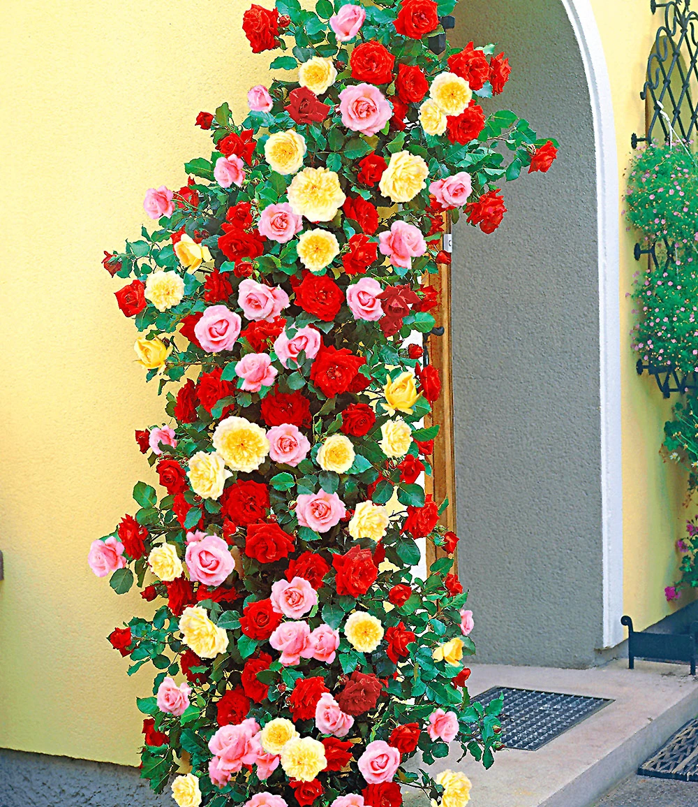 Das Kletterrosen-Trio begeistert mit ihrem atemberaubenden Wuchs und den leuchtenden Farben der Blüten. Aus den kräftigen Knospen erscheinen den ganzen Sommer über große, dicht gefüllte Blüten in Rot, Rosa und Gelb. Die Pracht und Schönheit dieser Kletterkünstler ist ein Geschenk für jeden Rosenfreund. Mit einer Rankhilfe verwandelt das Kletterrosen-Trio (Rosa) Hauswände, Mauern, Pergolen & Spaliere in ein Blütenmeer, denn sie verzweigt sich reich und bedeckt so große Flächen.