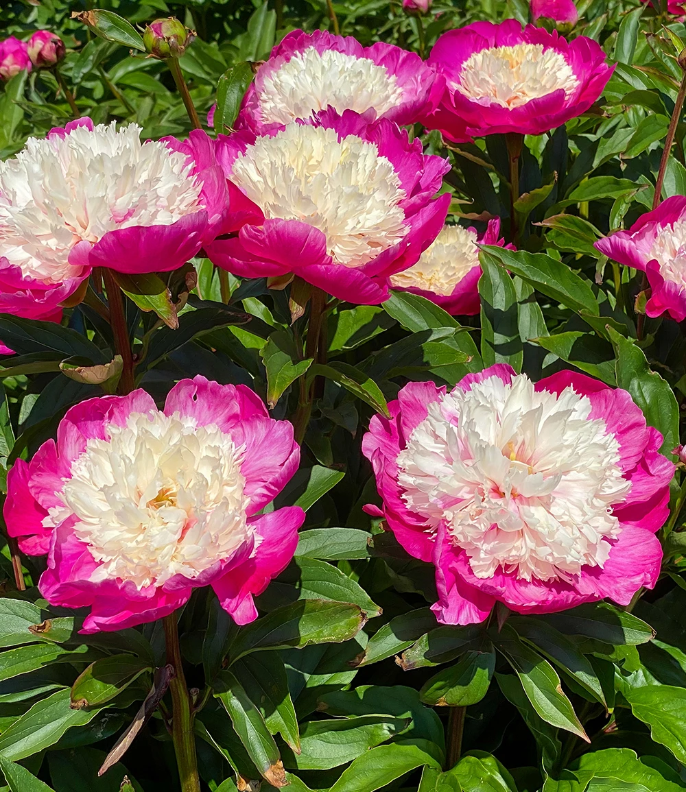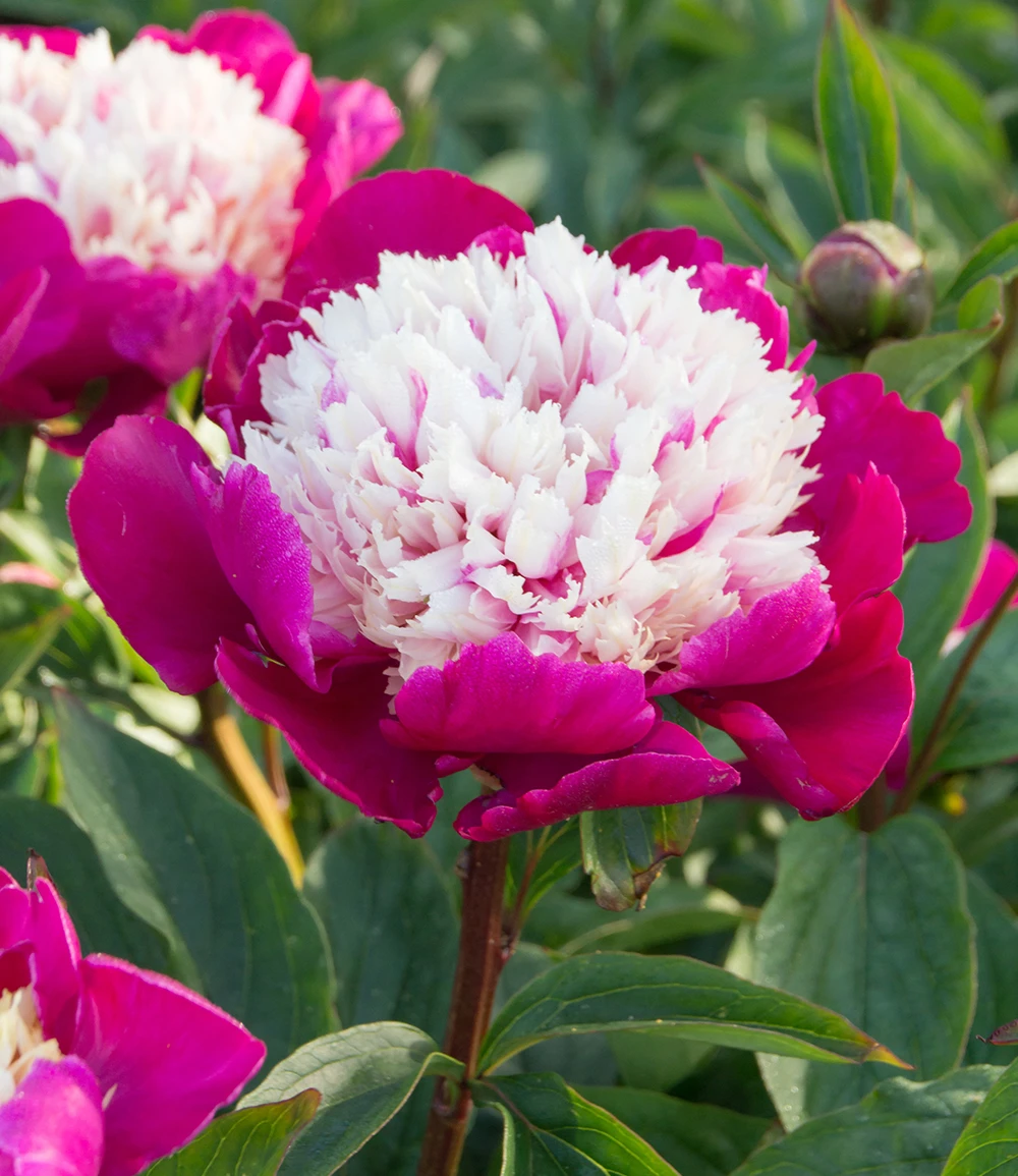 Die Päonie Pink with White Cap ist eine spektakuläre Pfingstrosen-Züchtung! Die handflächen-großen, pinkfarbenen Blüten mit schneeweißer Füllung sind der Eyecatcher in jedem Beet & im Kübel. Die winterharte TOP-Sorte bringt über viele Jahre Freude und verströmt einen zarten Duft! Im Garten lässt die Päonie Pink with White Cap (Paeonia lactiflora) jeden Betrachter ins Schwärmen geraten, aber auch als Schnittblume in der Vase kann sich keiner der eleganten Ausstrahlung der japanischen Pfingstrose entziehen. Die kräftigen Stiele der wüchsigen und blühfreudigen Pflanzen tragen stolz die Traumblüten und das dunkelgrüne Laub rundet das prachtvolle Erscheinungsbild der Sträucher ab. Päonien, auch als Pfingstrosen bekannt, sind sehr langlebige & anspruchslose Schönheiten.