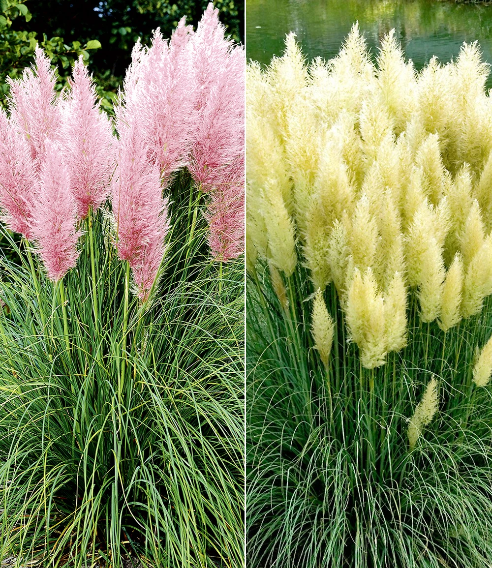 Königlich & stattlich ist diese Pampasgras-Kollektion, sie besteht aus je einer Pflanze „Rosa Pampasgras“ und „Weißes Pampasgras“. Das imposante und dekorative Pampasgras nimmt eine Sonderstellung im Garten ein. Seidige Blütenstände, die auf langen Stielen thronen, sind unübersehbar und kommen in Einzelstellung am besten zur Geltung. Eine wunderschöne Solitärpflanze, die in keinem Garten fehlen darf. (Cortaderia selloana rosea, Cortaderia selloana)