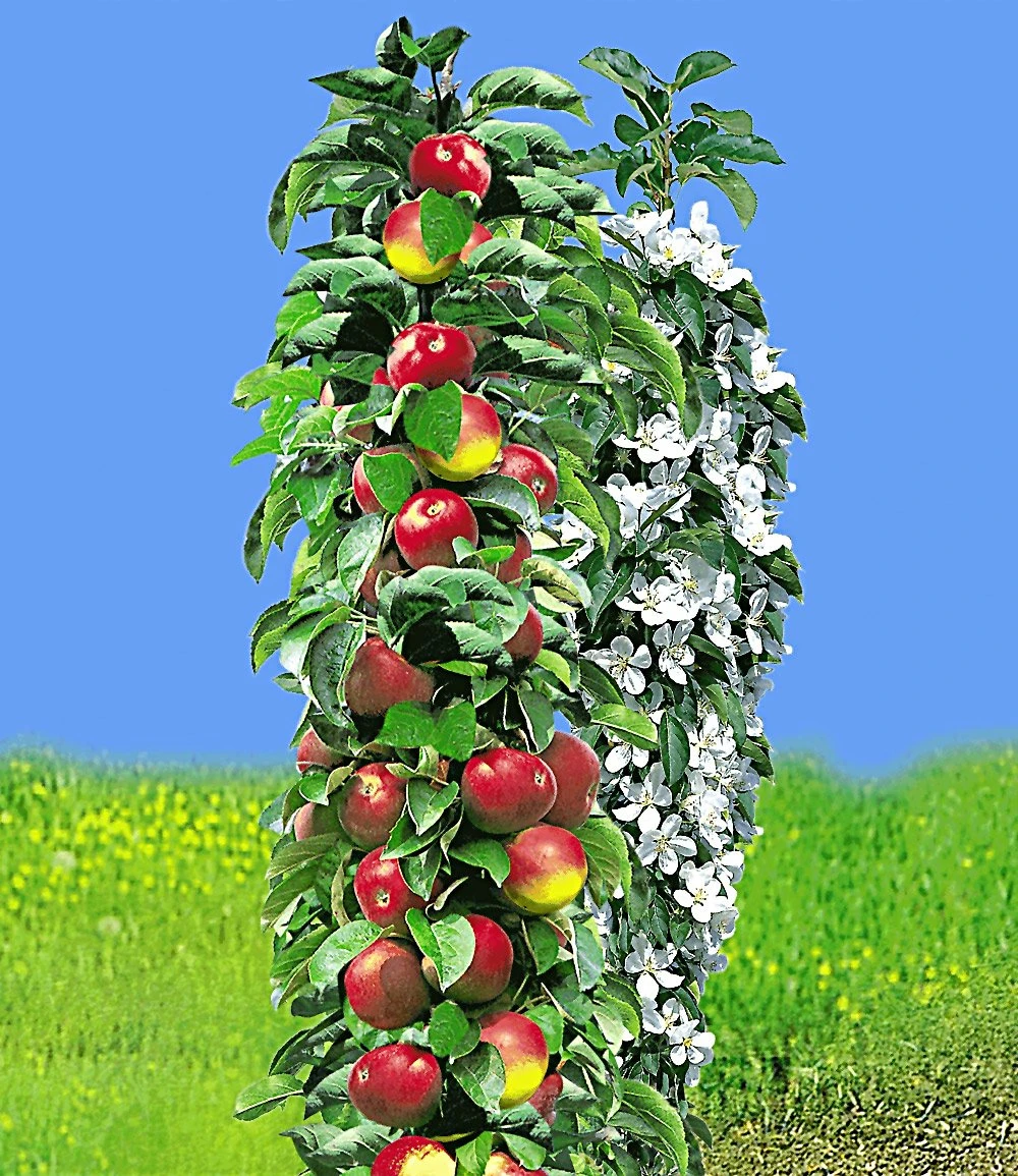 Der Säulenapfel Acrobat® wird ca. 2 bis 3,5 Meter hoch & bevorzugt einen sonnigen bis halbschattigen Standort. Der Pflanzabstand zu anderen Pflanzen in Ihrem Garten sollte 60-80 cm betragen. Von Ende August bis September ist die Erntezeit für die leckeren Äpfel. Der Pflegeaufwand ist gering, ein Rückschnitt ist nur bei zu langen Seitentrieben notwendig, dann werden Mitte/Ende Juni alle Seitentriebe auf 2-3 Augen eingekürzt. (Malus domestica)