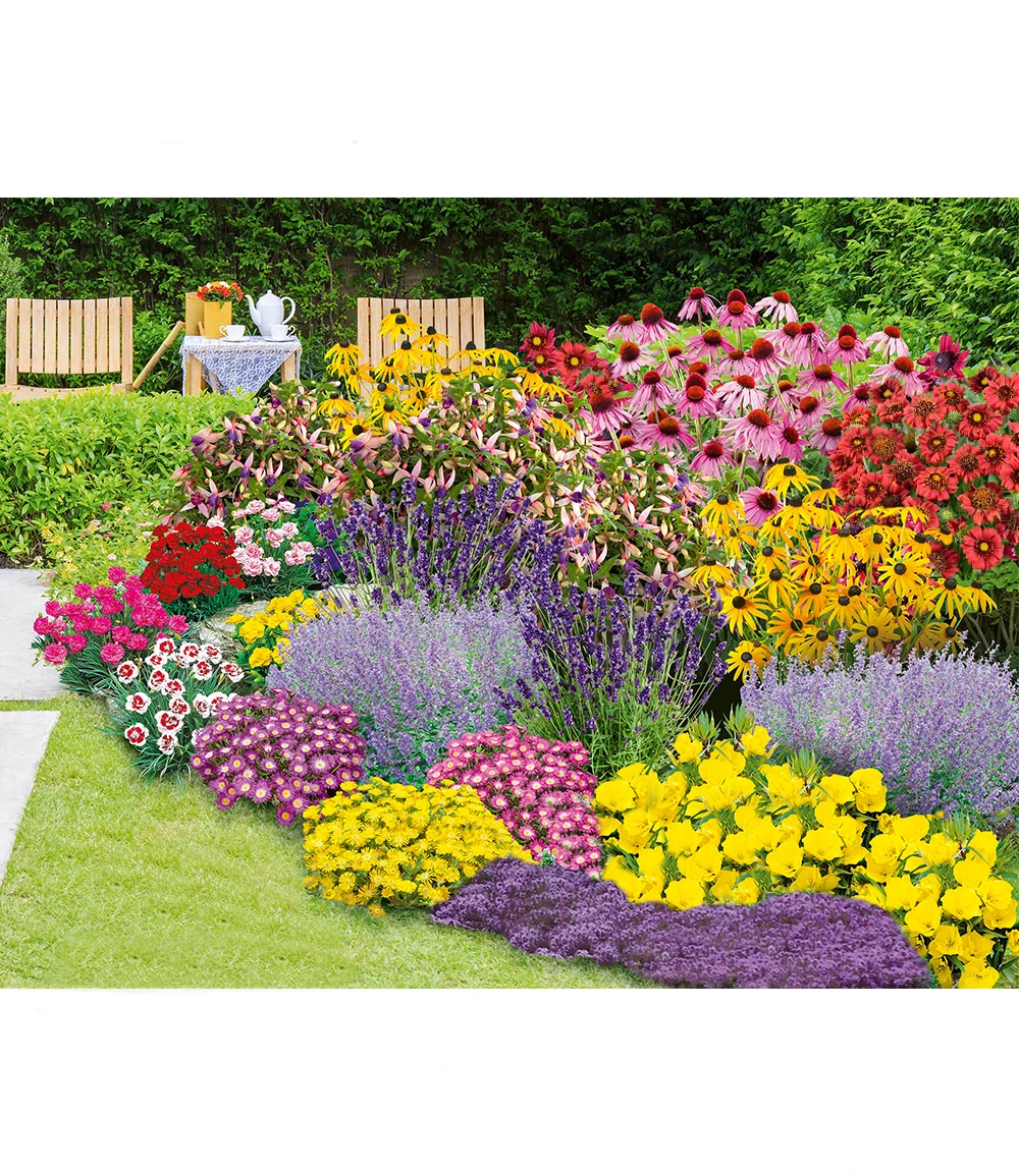 Das winterharte Staudenbeet Blooms for Months enthält 29 Pflanzen im 9×9 cm Topf. Das Staudenbeet blüht lange, gedeiht gut und ist Jahr für Jahr sehr ausdauernd! Die bunte Blütenpracht taucht Ihren Garten monatelang in einen wahren Farbenrausch und die Blüten bieten für Bienen, Hummeln und Schmetterlinge eine reichhaltige Nahrungsquelle. So leisten Sie einen wichtigen Beitrag zum Naturschutz und kommen gleichzeitig in den Genuss eines opulent blühenden Gartens.
