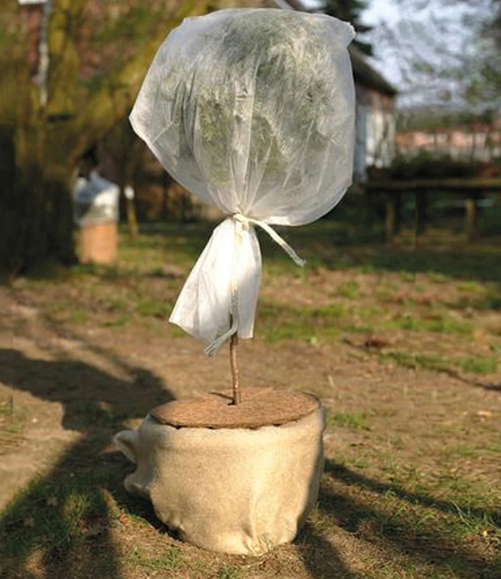 Die Winterschutz Vlieshaube mit Reißverschluss wird einfach über frostempfindliche Pflanzen im Garten, auf Balkon und Terrasse gestülpt und unten mit der Zugkordel fixiert – einfacher geht es nicht! Ihre Pflanzen und Kübelpflanzen sind mit der Haube aus Vlies im Winter vor Frost & Schnee geschützt und verschönern im nächsten Jahr wieder Ihr grünes Reich. Die Winterschutz Vlieshaube mit Reißverschluss ist licht- und luftdurchlässig und bietet einen zuverlässigen Kälteschutz vor eisigem, austrocknendem Wind und vor Rissen in der Rinde. Bei immergrünen Kübelpflanzen wird durch die UV- und witterungsbeständige Winterschutz Vlieshaube mit Reißverschluss die Verdunstung über die Blätter reduziert und Rosen werden durch die Schattierung vor einem zu frühen Austrieb im zeitigen Frühjahr bewahrt. Mediterrane Pflanzen, Buchs & Co. sind besonders im Kübel dankbar für diesen Frostschutz.