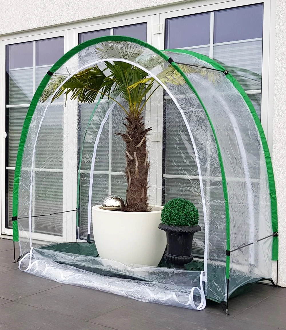 Das Winterschutz-Zelt Arctic ist schnell im Garten, auf dem Balkon oder der Terrasse aufgebaut. Innerhalb des großzügigen Innenraums finden große und kleine Pflanzen reichlich Platz. Die UV-beständige Folie ist transparent und lichtdurchlässig und über die beiden großen Öffnungen auf der Vorder- und Rückseite können Sie mühelos für die erforderliche Luftzufuhr sorgen. Auch das Gießen lässt sich so im Nu erledigen. Das Winterschutz-Zelt Arctic ist ideal für alle Gartenfreunde, die kein Gewächshaus besitzen! Das mühevolle Umquartieren von Kübelpflanzen entfällt und die Pflanzen werden nicht der Strapaze eines Standortwechsels mit veränderten Lichtverhältnissen ausgesetzt. Überwintern Sie Ihre wertvollen Kübelpflanzen und Topfpflanzen ab sofort einfach draußen in dem mobilen Gewächshaus.