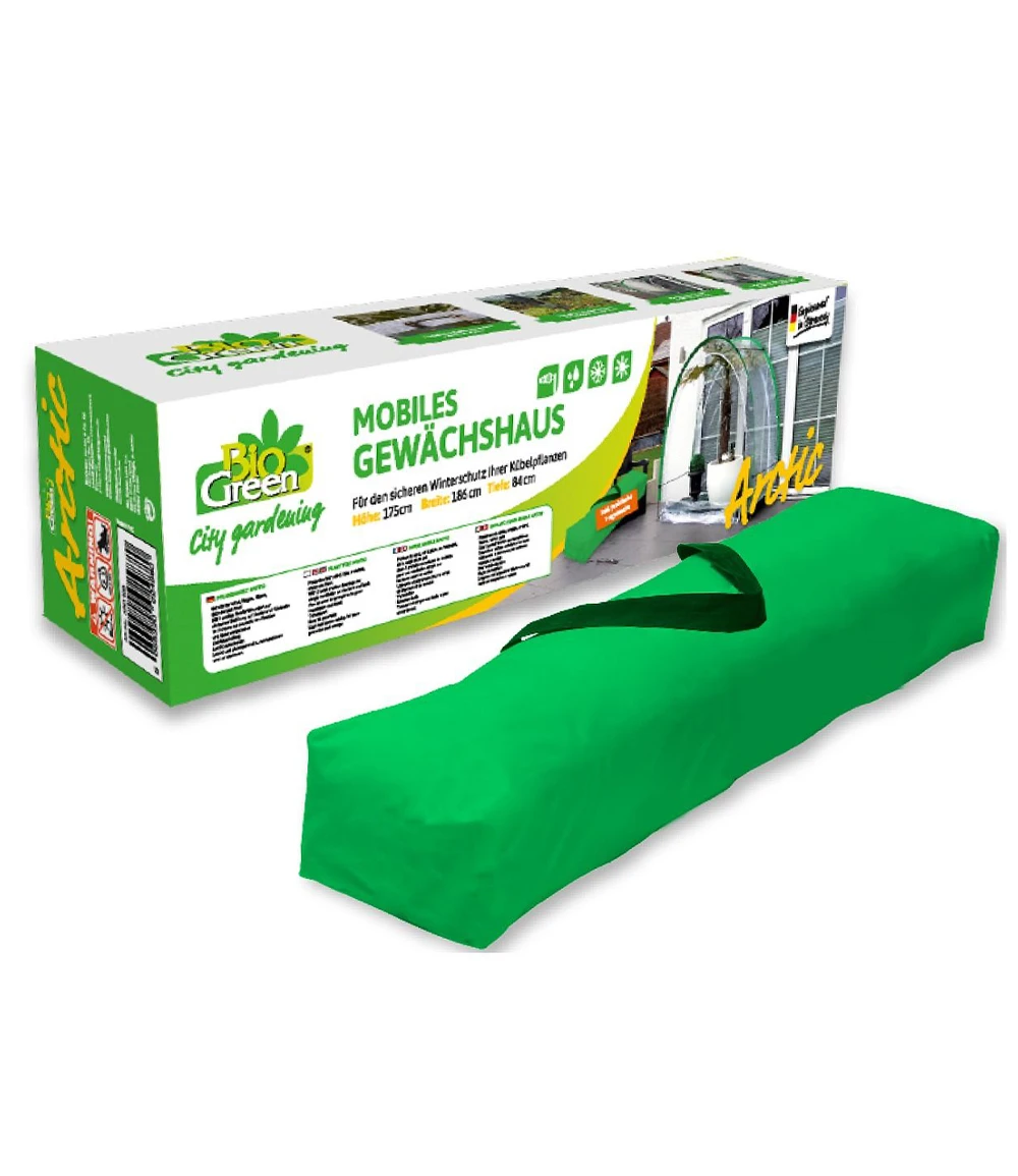 Das Winterschutz-Zelt Arctic von Bio Green ist robust und kann über mehrere Jahre hinweg eingesetzt werden. Es wird in einer praktischen Tasche geliefert, in der das Überwinterungszelt aufbewahrt werden kann, wenn es nicht gebraucht wird. Der problemlose Aufbau erfordert keine besonderen Kenntnisse und auch kein zusätzliches Werkzeug. Die mitgelieferten Bodenheringe sorgen für einen festen Stand.