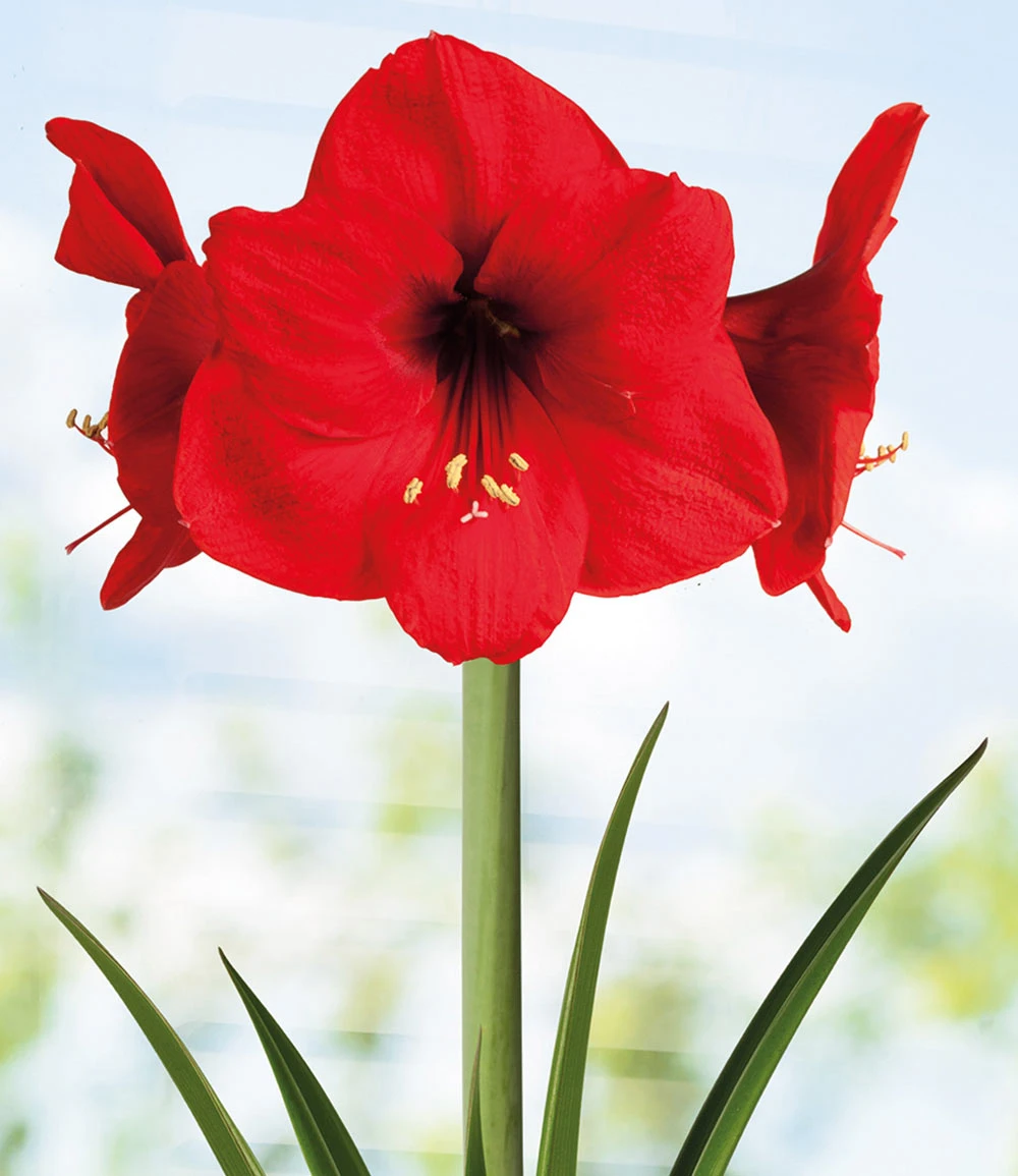 Die Wachs-Amaryllis ‚X-mas‘ Rentier (Ritterstern) sollte an einem hellen & sonnigen Standort, z.B. auf der Fensterbank stehen. (Hippeastrum)