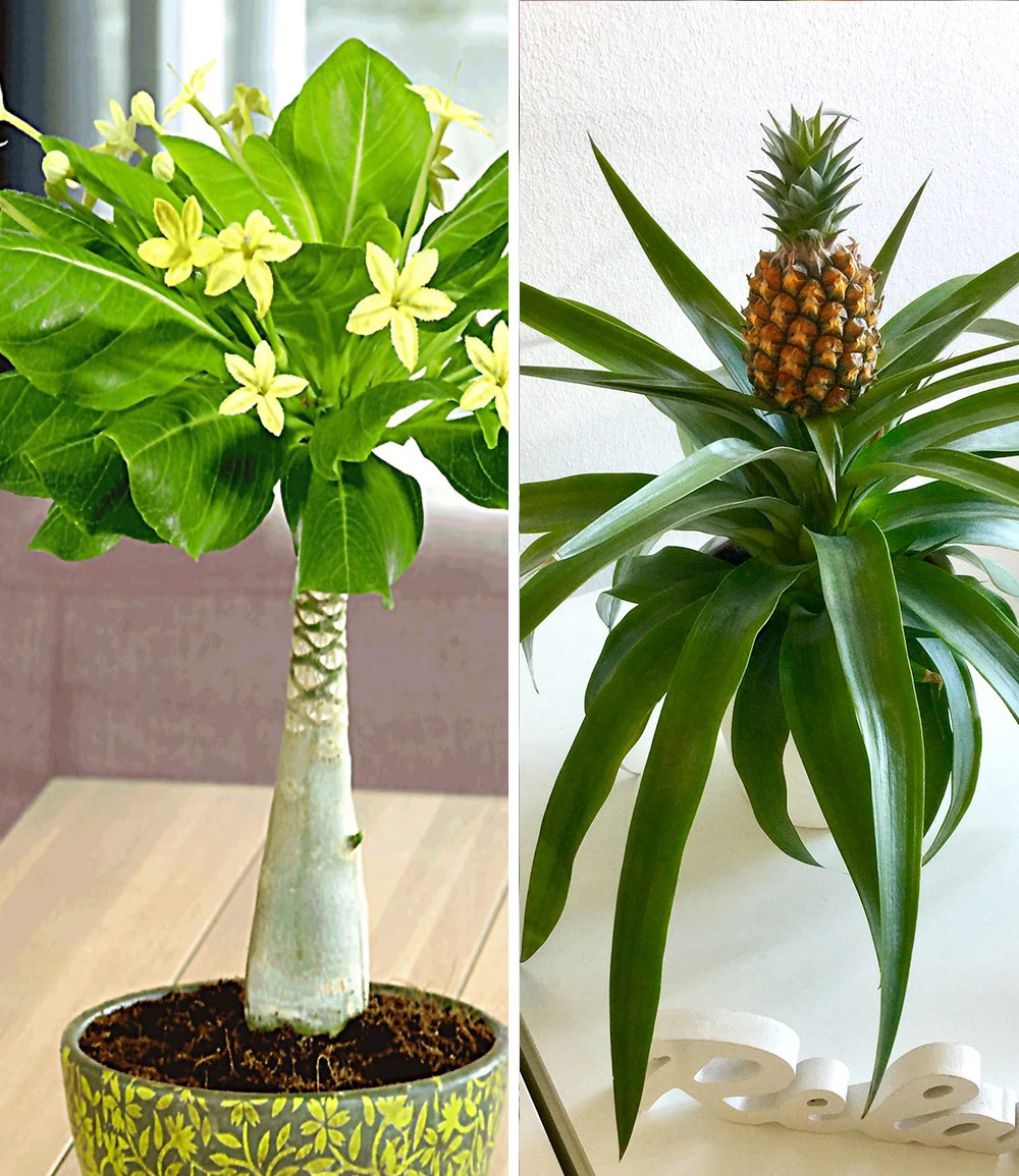 Ein Blickfang im Zimmer: Diese Zimmerpflanzen-Kollektion enthält 1 Pflanze Hawaii-Palme und 1 Pflanze Ananaspflanze Corona.