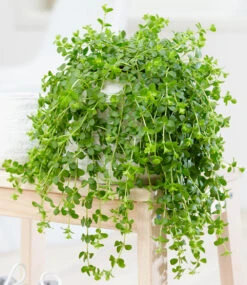 Der attraktive Zwergpfeffer Isabelle ist eine pflegeleichte Zimmerpflanze, die in der Wohnung und im Büro frischgrüne Akzente setzt. Sie hat einen schön buschigen Wuchs mit hängenden Ranken, die dicht an dicht mit kleinen, runden, gummiartigen Blättern besetzt sind. Die langen, grünen Triebe hängen dekorativ über den Topfrand, das sieht auf der Fensterbank, auf Kommoden, Regalen und Schränken umwerfend aus. Aber auch als Hängepflanze in einer Blumenampel macht der Zwergpfeffer Isabelle (Peperomia) eine gute Figur. Zusätzlich zu den optischen Vorzügen ist die Pflanze auch einfach in der Pflege und somit auch für Anfänger bestens geeignet. Ein heller Standort und gelegentlich etwas Wasser und Dünger genügen, damit die Zimmerpflanze prächtig gedeiht.